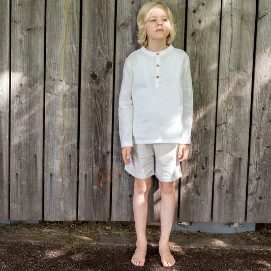 Lille Havn weite Sommerhose mit Paperbagbund weiß-gelb