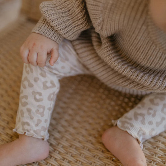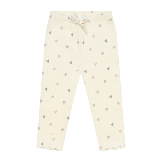 Leevje Leggings „Hearts“ – mit Schleife & Herzprint aus Bio-Baumwolle in light beige