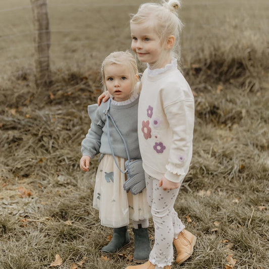 Leevje Schlag-Leggings „Lavender Flowers“ – mit Schleife aus Bio-Baumwolle
