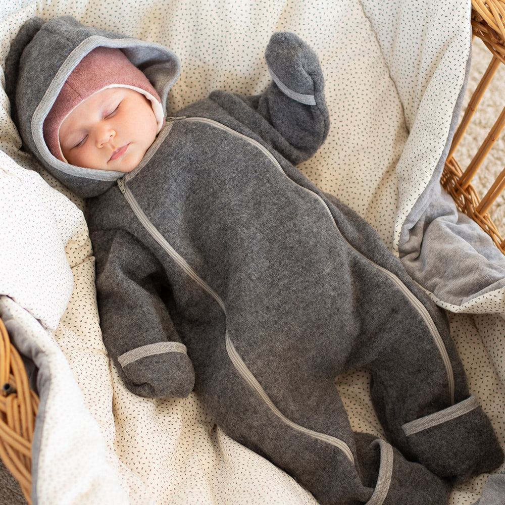 Popolini Wollfleece Bindemütze Baby- Sand Melange