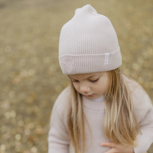 Huttelihut Schlupfmütze aus Wollfleece "Burlwood Herzen"