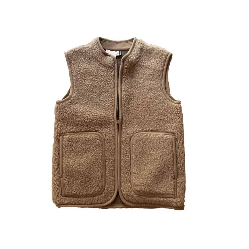 Der „RUDI Junior“ Bodywarmer in der Farbe Tan ist eine hochwertige, ultraleichte Wollweste aus 100 % mulesingfreier und Woolmark‑zertifizierter Biowolle. Mit seinem geraden Schnitt, kurzem Stehkragen und praktischem Reißverschluss vereint er kindgerechtes Design mit Funktionalität. Zwei Taschen vorne bieten Platz für kleine Schätze und warme Hände – ideal für Schule, Spielplatz, Spaziergänge oder den Alltag.