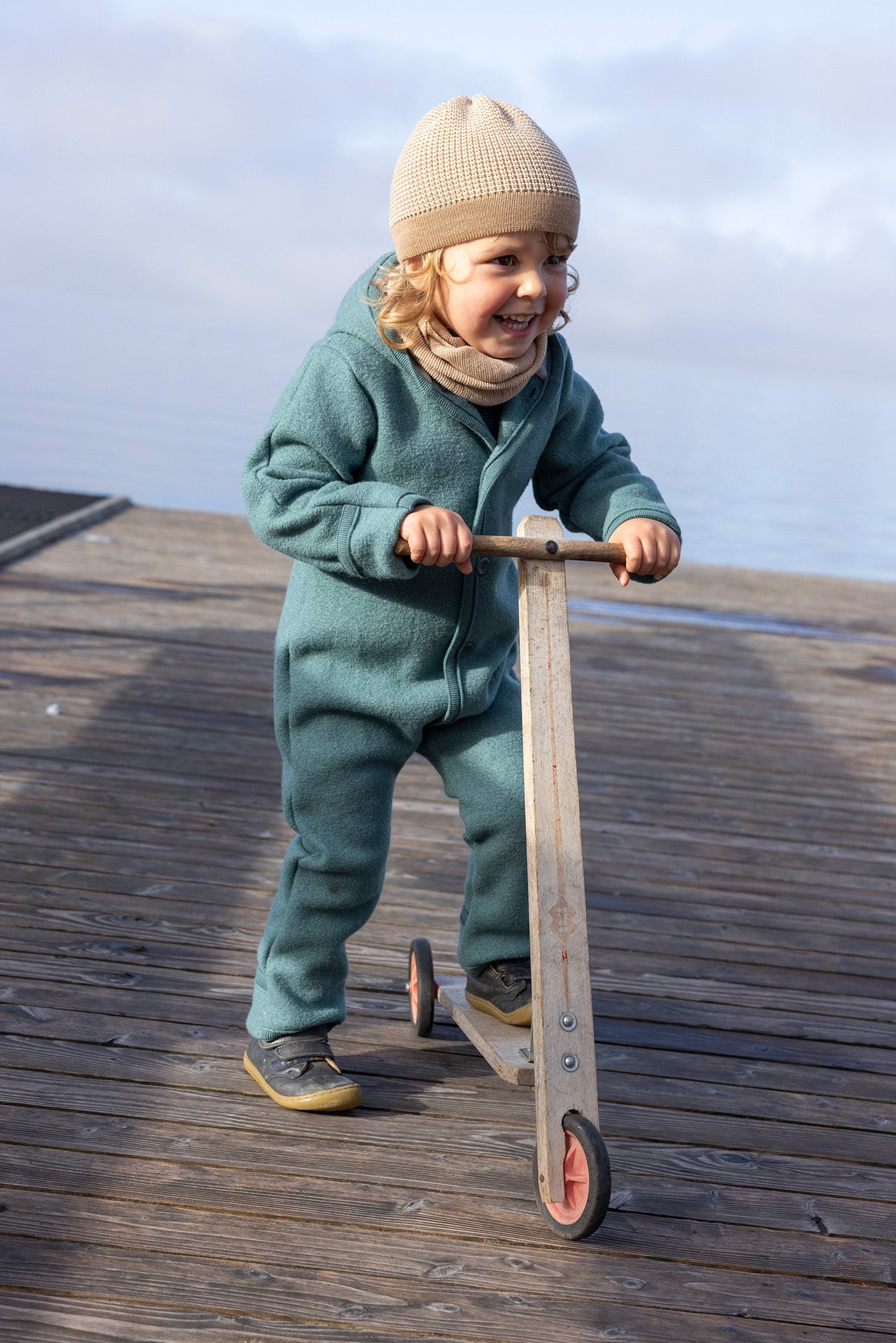 Das Material ist temperaturausgleichend: Der Wollwalk wärmt auch bei Kälte, ist aber so beschaffen, dass das Kind nicht überhitzt, wenn es rein in Räume oder in den Kinderwagen geht. Zudem ist der Overall unisex und in vielen schönen Farben erhältlich – ideal, um ihn perfekt auf die Vorlieben oder den Stil deiner Kunden abzustimmen.