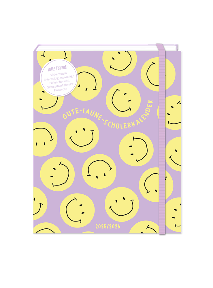 Mit dem fröhlichen Schülerkalender „Gute-Laune“ macht Planen richtig Spaß! Ob Hausaufgaben, Prüfungen, Geburtstage oder Ferien – dieser Kalender begleitet Kinder und Jugendliche strukturiert und motivierend durch das Schuljahr. Das liebevoll gestaltete Design, die bunten Details und viele Mitmachseiten sorgen zusätzlich für kreative Abwechslung im Schulalltag.