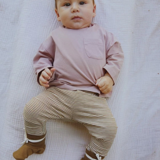 Diese Baby-Leggings von Gray Label bestehen aus einem Mix aus 95 % Bio-Baumwolle und 5 % Elasthan. Das Material ist angenehm weich, atmungsaktiv und elastisch – ideal für empfindliche Babyhaut und volle Bewegungsfreiheit.