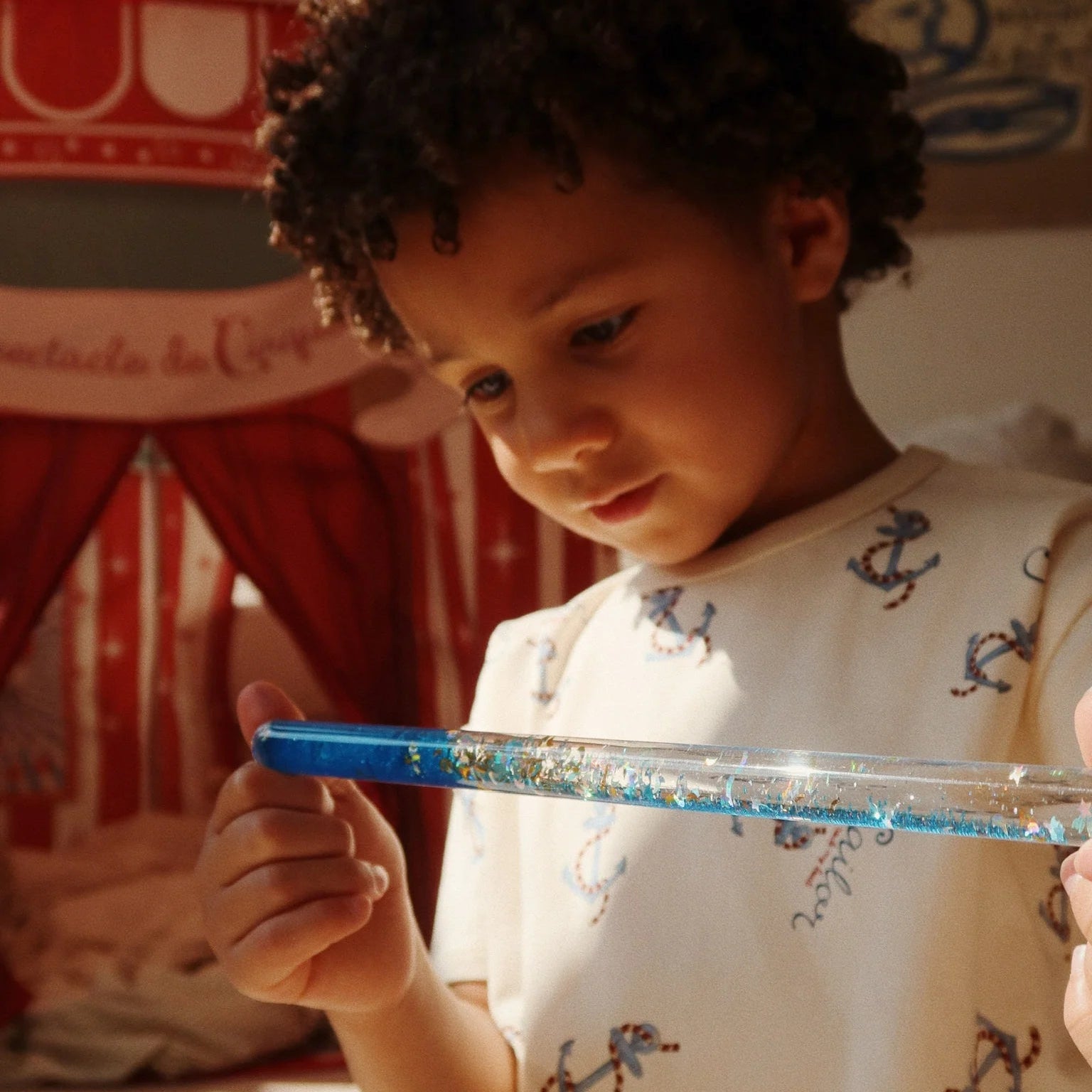 Konges Sløjd Magischer Glitzer Zauberstab ist ein liebevoll gestaltetes Spielzeug, das Kinder sofort in eine fantasievolle Welt eintauchen lässt. Im Inneren wirbeln feine Glitzerpartikel, sobald der Stab gedreht wird – ein echter Hingucker für kleine Zauberer und Prinzessinnen.