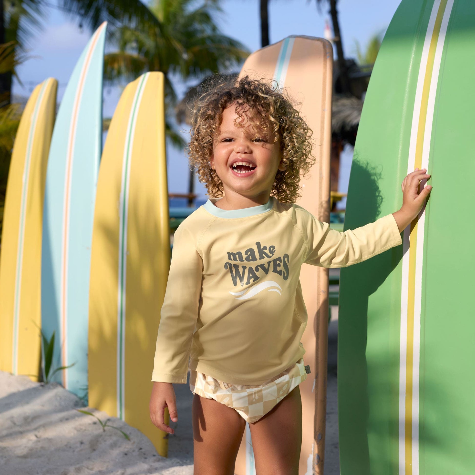 Kleine Wellenreiter aufgepasst! Mit dem langärmeligen Kinder Shirt mit UV-Schutz 60 von LÄSSIG steht dem nächsten Badeausflug am Strand oder im Schwimmbad nichts mehr im Weg.