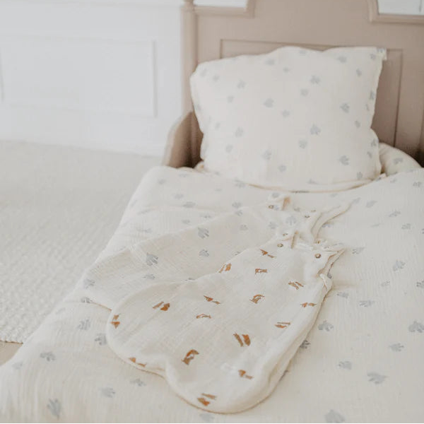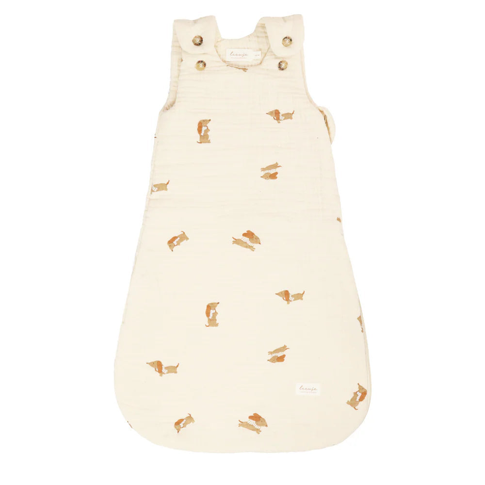 Sanft, sicher & im trendigen Design – der Schlafsack „Little Dog“ von Leevje ist der perfekte Begleiter für süße Träume. Gefertigt aus 3-lagigem Musselin aus 100 % Bio-Baumwolle und einer Füllung aus 100 % recyceltem Polyester, bietet er ein angenehm weiches Tragegefühl und hält dein Baby bei einer Raumtemperatur von etwa 18–22 °C angenehm warm – dank eines TOG-Werts von 2.