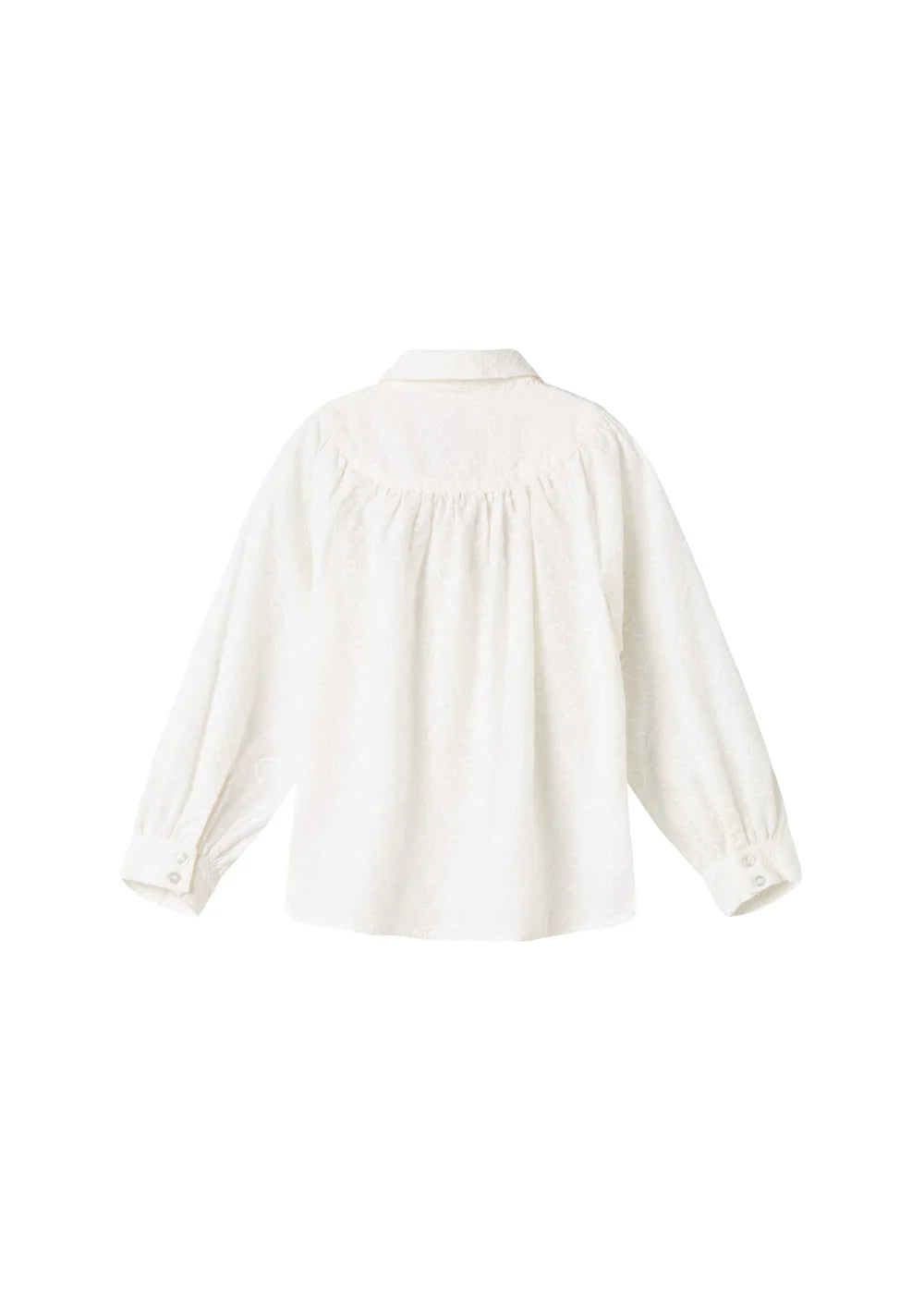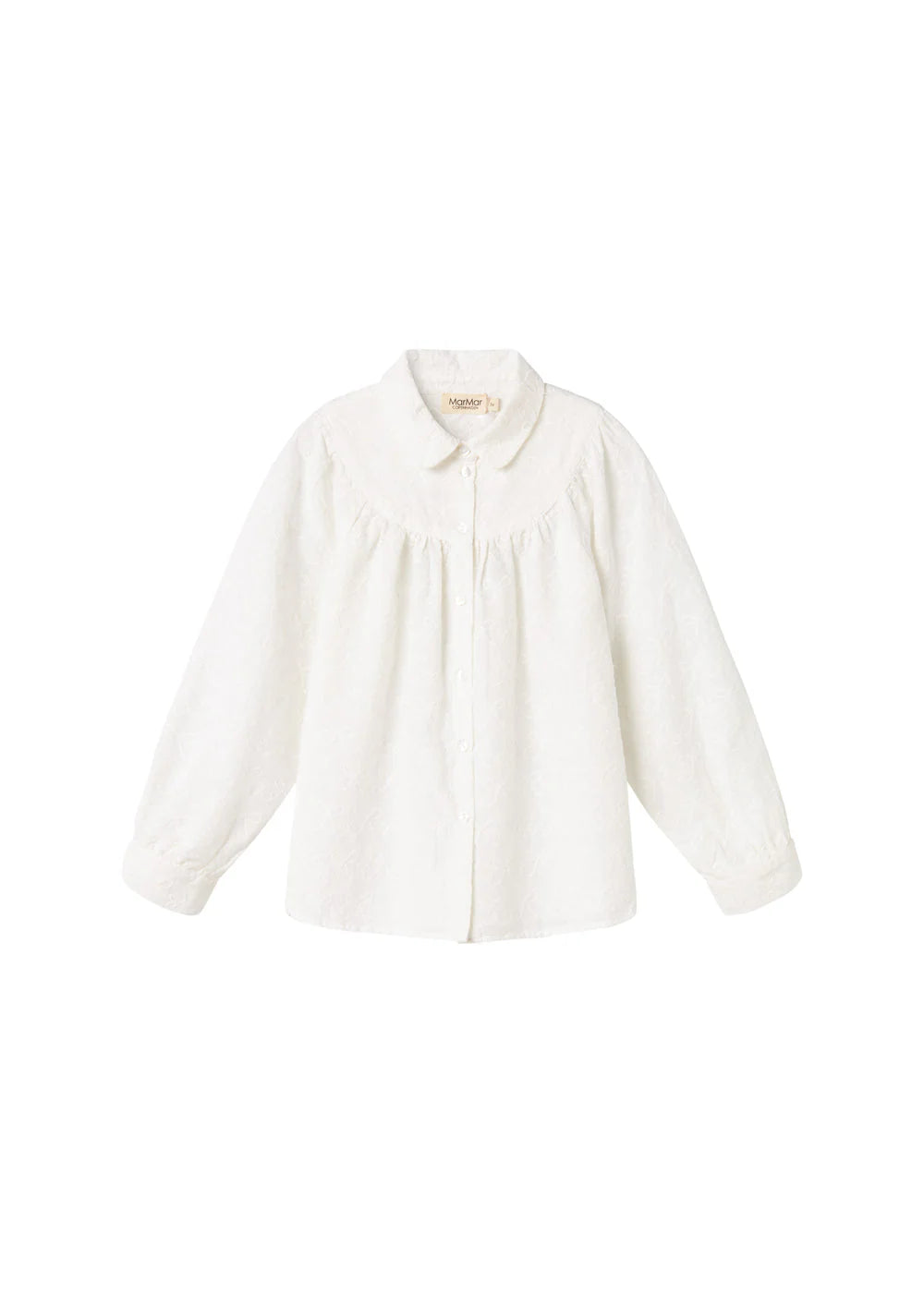Elegant durch den Tag – mit der Trissa-Bluse von MarMar Copenhagen in Weiß wird dein Kind modisch und charmant eingekleidet. Die Bluse besteht aus 100 % Baumwolle und besticht durch eine zarte Ton-in-Ton-Stickerei in Form kleiner Schleifen. Die fließende Silhouette mit rundem Passe, sanften Falten und klassischem Kragen verleiht einen zeitlos-schönen, femininen Look. Die durchgehende Knopfleiste macht das An- und Ausziehen besonders einfach und kindgerecht.