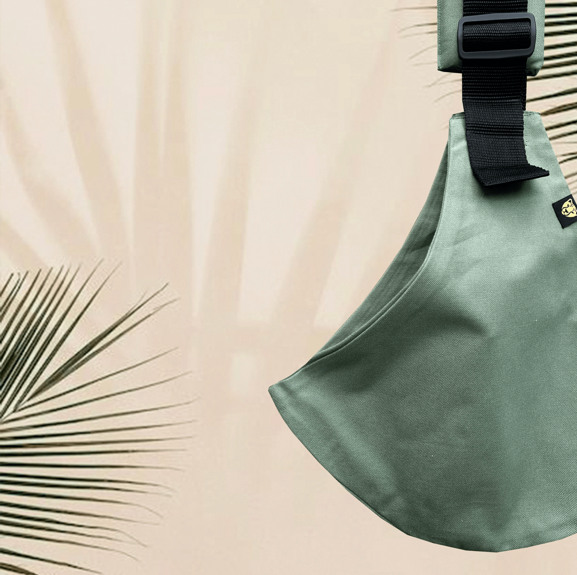 Material: Trage aus 100% Bio-Baumwolle und Gurt aus 100% Polyester.