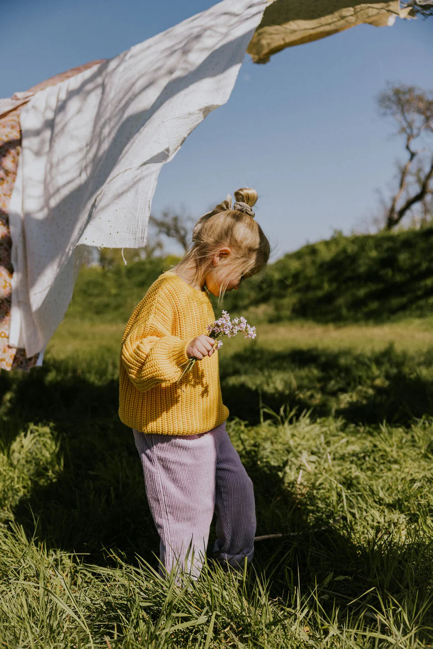 Casual-Chic trifft Komfort – die Hose Beau Corduroy in lila von Yuki Kidswear sind lässige Cord-Hosen für Kinder, die Stil und Alltagstauglichkeit vereinen.