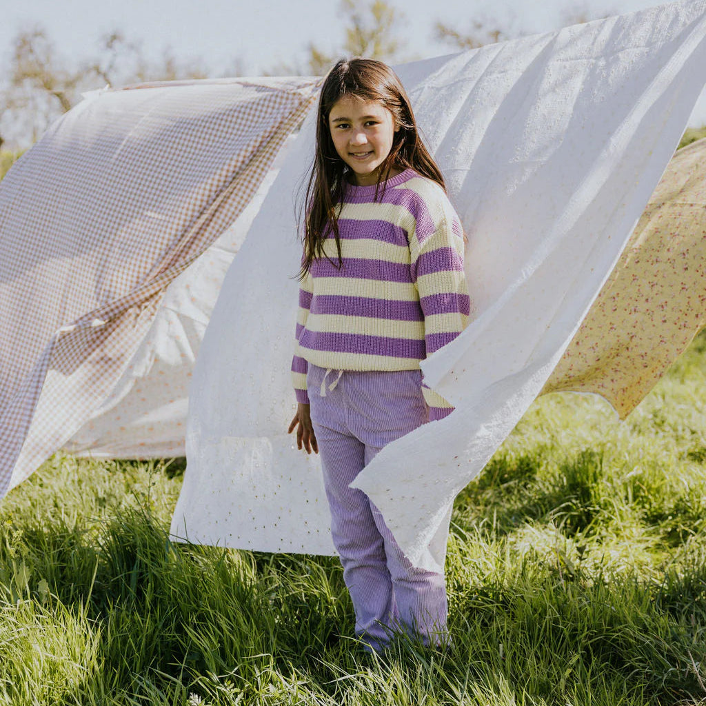 Leicht, verspielt und perfekt für den Sommer – der Stripes Knitted Sweater in Ice Cream von Yuki Kidswear ist ein trendiges Strickteil mit sommerlichem Flair.